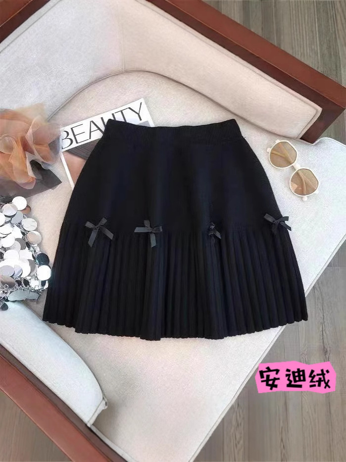 Главная страница > Корейская бантик вязаная плиссированная юбка женский 2024 осень и зима новая сладкая высокая талия тонкая короткая юбка