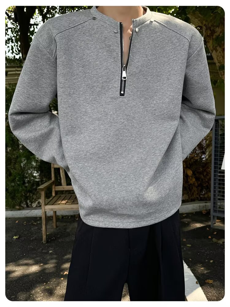 Черная толстовка с половиной молнией cleanfit, мужская весенне-осенняя высококачественная модная брендовая футболка с длинными рукавами и подплечниками в американском стиле High Street