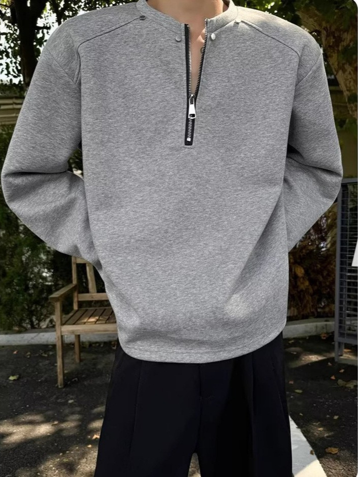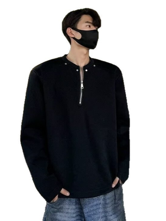 Главная страница > Черная толстовка с половиной молнией cleanfit, мужская весенне-осенняя высококачественная модная брендовая футболка с длинными рукавами и подплечниками в американском стиле High Street