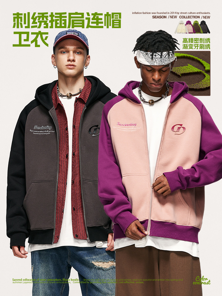 Главная страница > Мужская одежда Jie Zhan | Вышитая контрастная толстовка с капюшоном реглан 2025, мужская весенне-осенняя куртка, кардиган на молнии с вышивкой зубной щетки