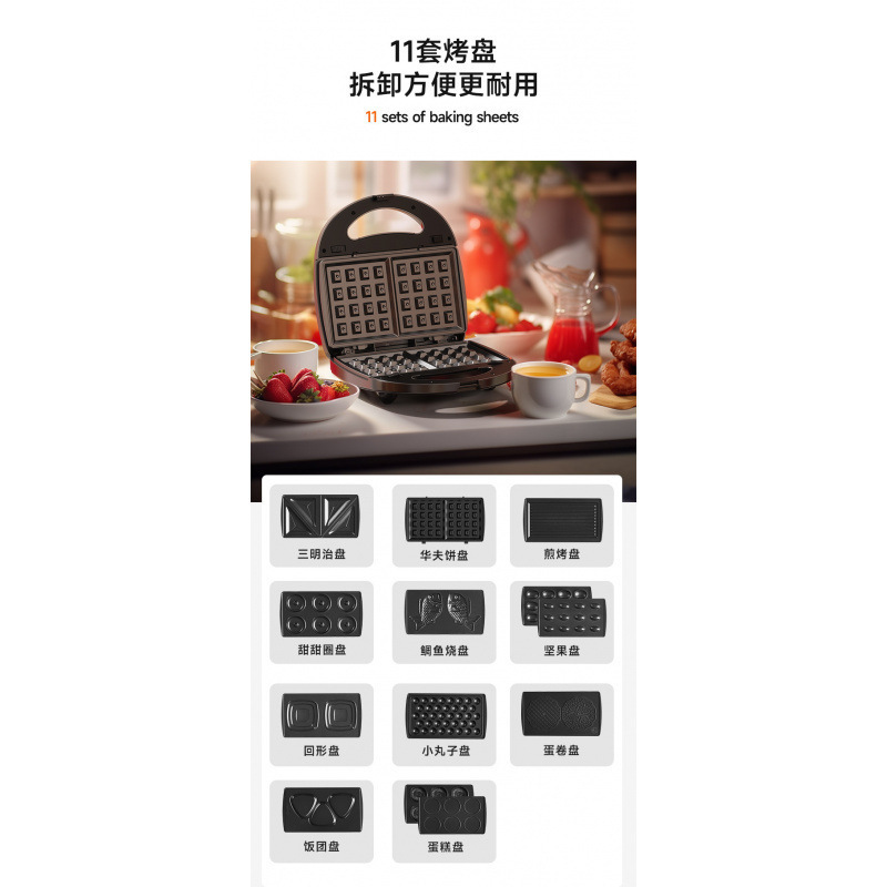 Машина для завтрака «восьмь в одном» (сэндвич + вафли + сковорода + тарелка с орехами + пончик + тарелка с лещом + маленькая тарелка для фрикаделек + тарелка для торта)