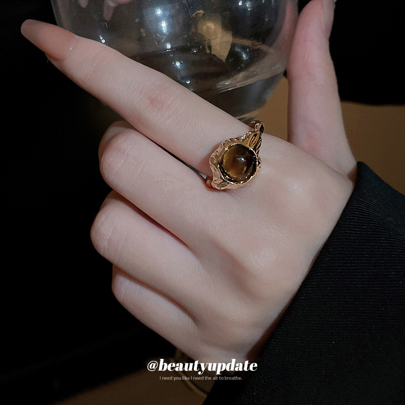 Главная страница > Настоящее золото с гальваническим Цирконом круглое квадратное Открытое кольцо с бриллиантом Ретро высококачественное кольцо на указательный палец темперамент нишевое кольцо