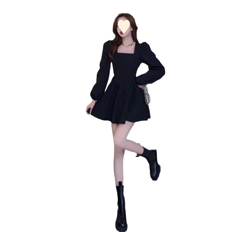 Главная страница > Миниатюрное платье с квадратным вырезом во французском стиле, базовый слой для осени и зимы, с эффектом утягивания талии, чистая элегантность, маленькое черное платье в стиле Хепберн, новая модель 2025 года.