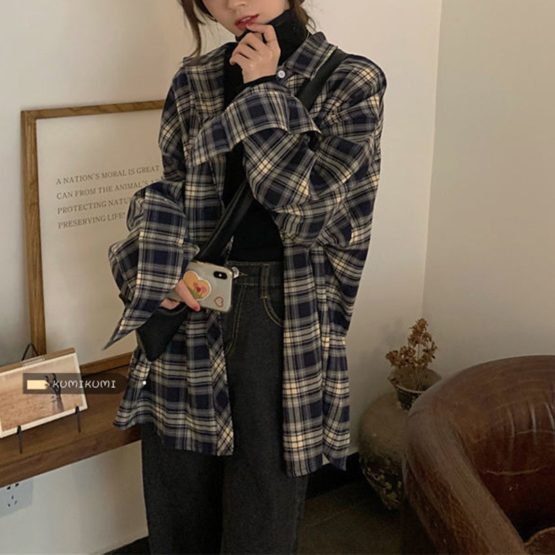 70% хлопчатобумажная рубашка # ранняя осень, сложенные в клетку, рубашка высокого уровня, свободная ленивая ветерка с длинными рукавами, женская рубашка