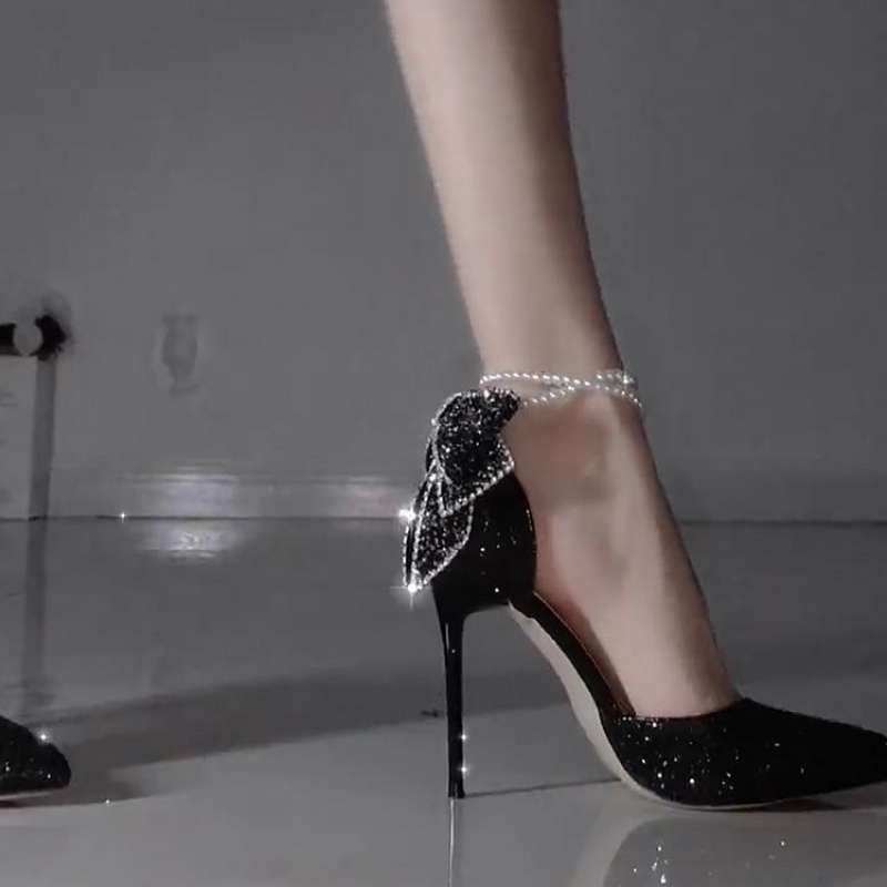 Главная страница > Черные туфли на высоком каблуке для женщин 18 лет, кристальные туфли для свадьбы 2025, новые вечерние туфли-стилето для двух образов
