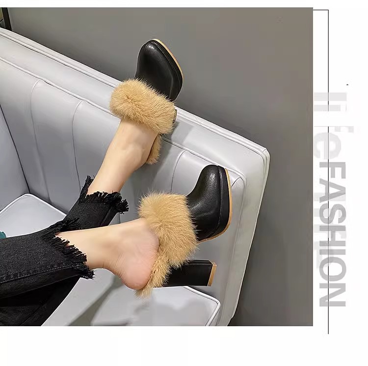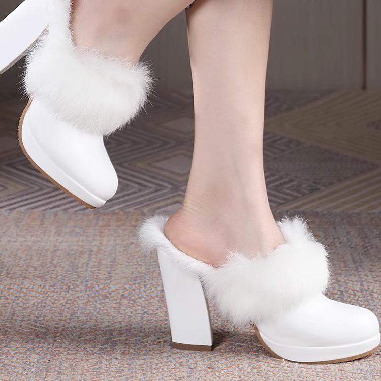 Главная страница > Тапочки Mao Baotou 2023 новые зимние новые кроличьи меха модная верхняя одежда на толстом каблуке водонепроницаемые очень высокие каблуки для женщин