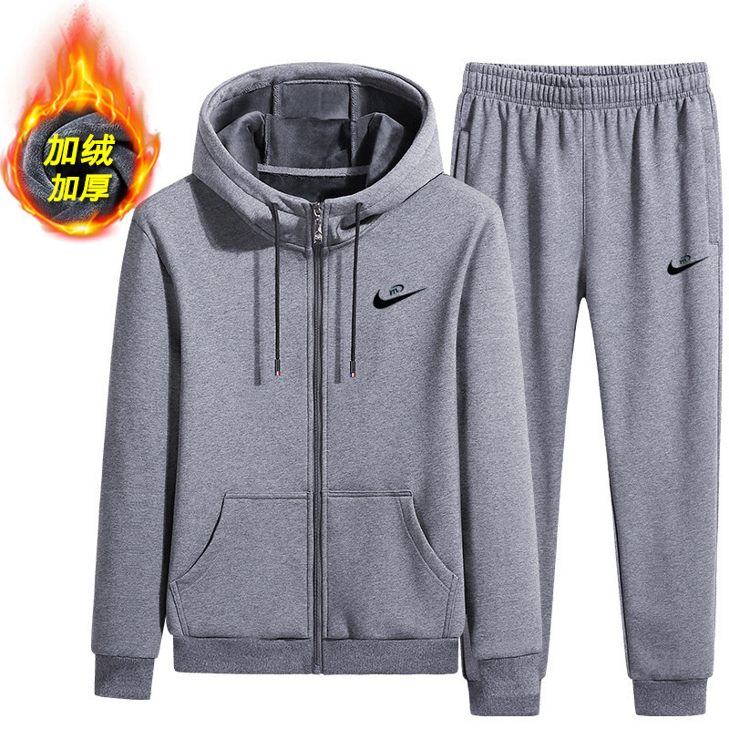 Главная страница > Костюм, мужской осенне-зимний новый мужской повседневный костюм, модный бренд, Спортивная утепленная куртка на флисовой подкладке, спортивные штаны, мужская одежда из двух предметов