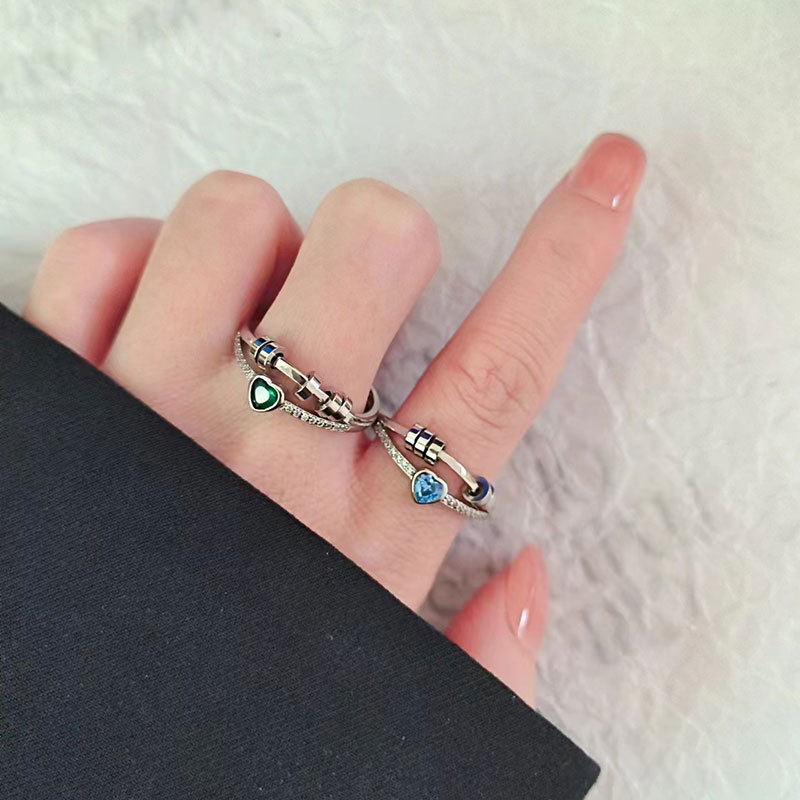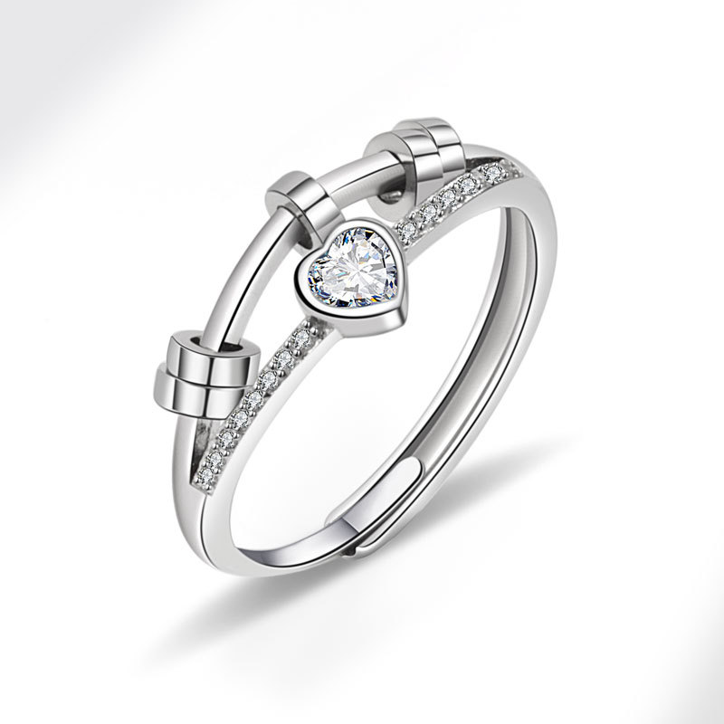 Главная страница > Трансграничное Новое любовное кольцо может быть повернуто, противотревожное кольцо, Двухслойное индивидуальное кольцо с цирконом.