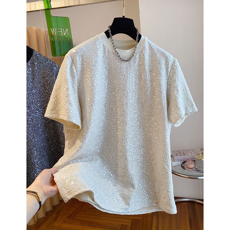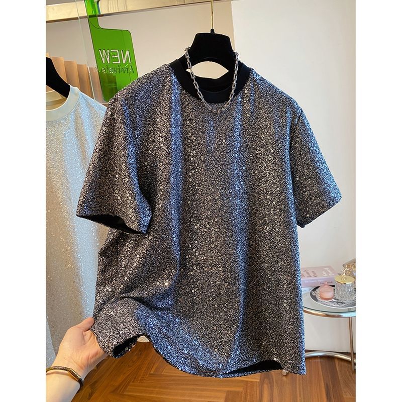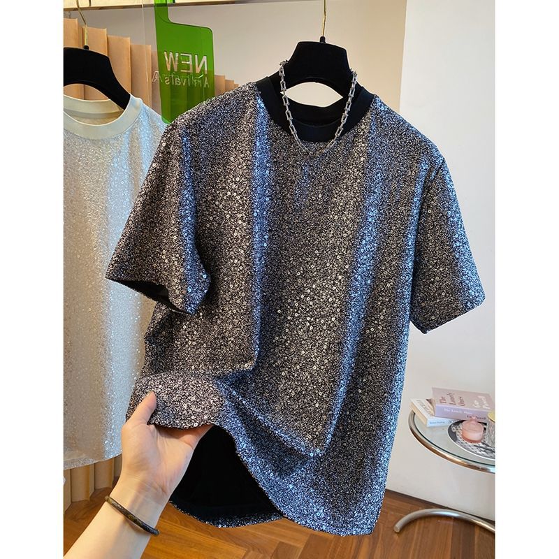 Главная страница > ЭЛЕКСНАЯ повседневная мужская одежда с половинным рукавом прилив бренда Летний дизайн высокого класса блестки футболка с короткими рукавами повседневная тонкая футболка
