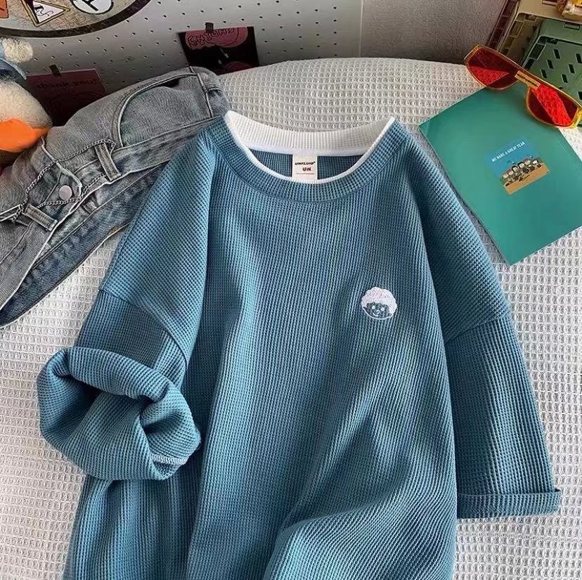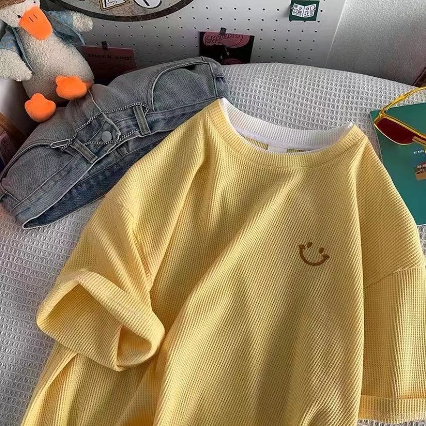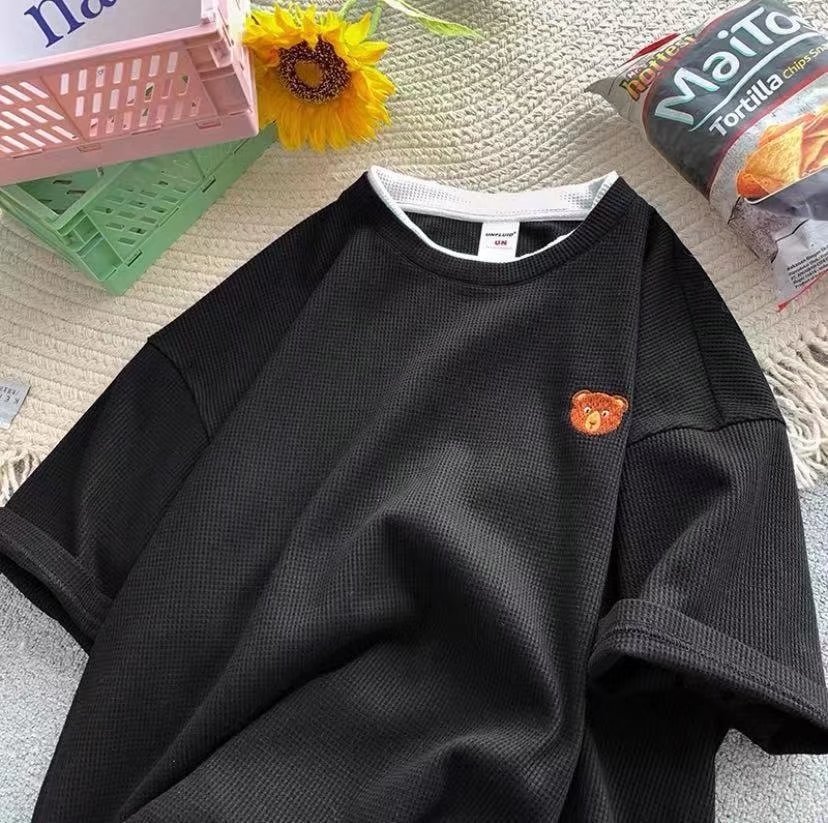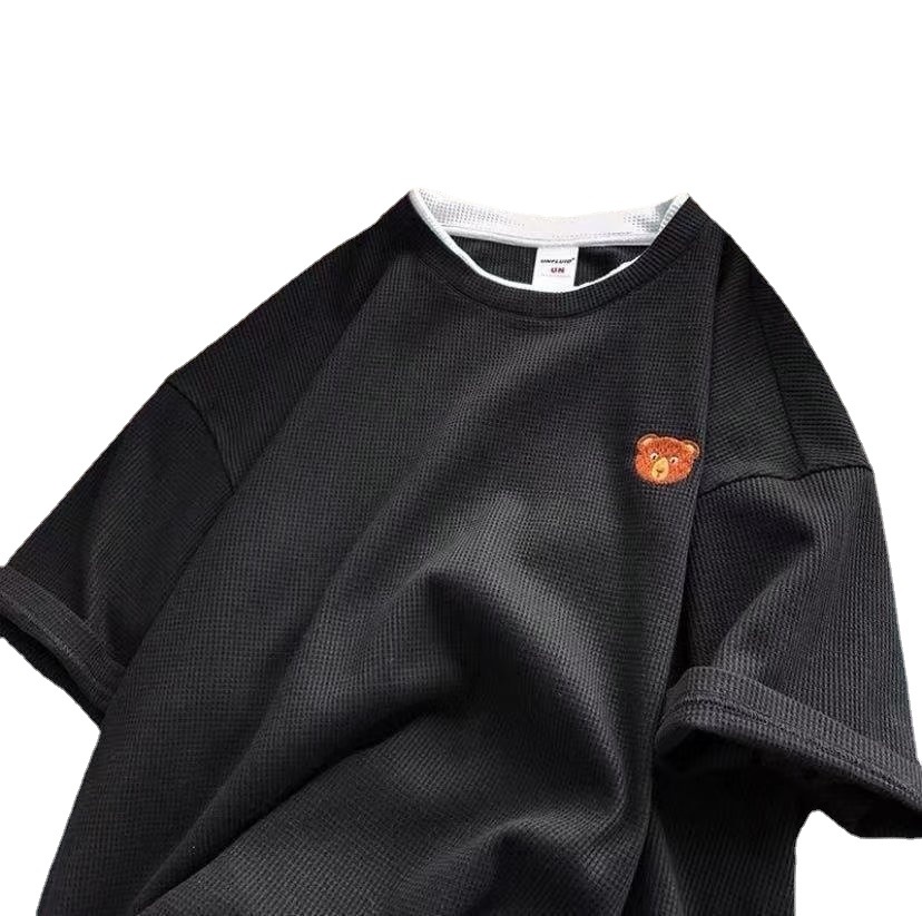 Главная страница > Вафельная футболка с короткими рукавами, мужская летняя ниша Sense, 2023, модный топ с рукавами до локтя, имитация двух предметов