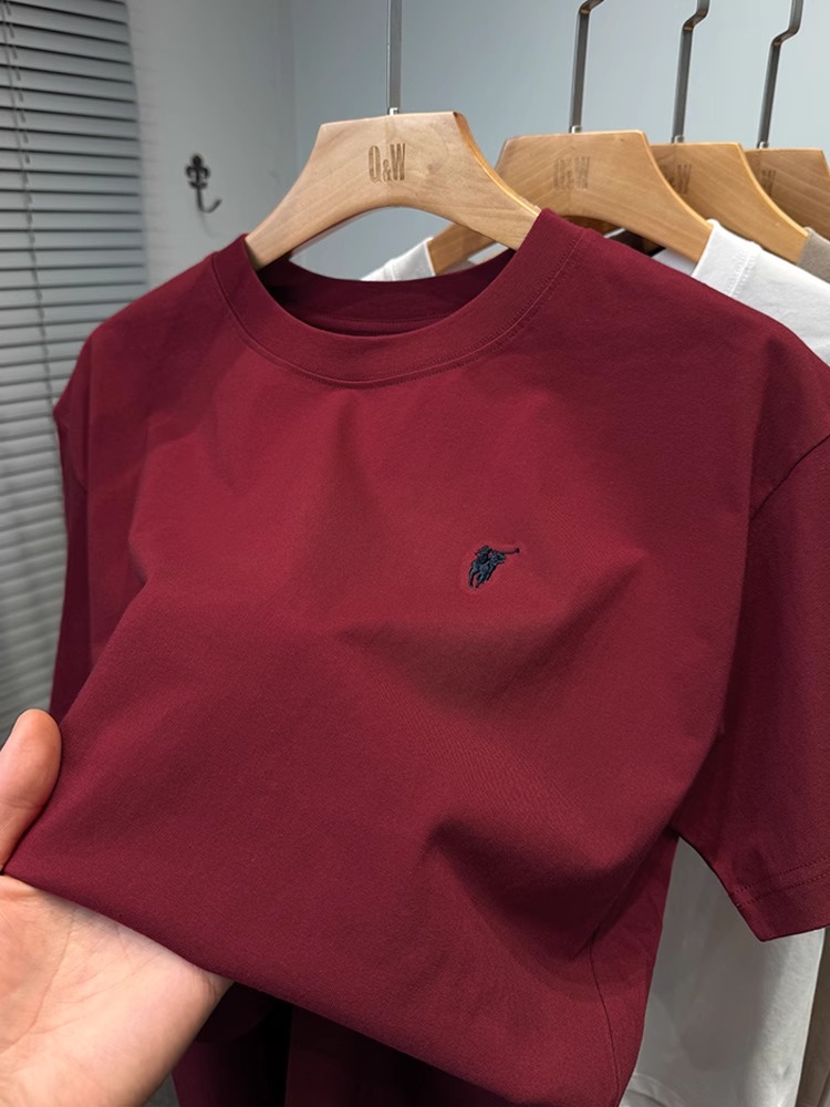 Главная страница > Мужская летняя футболка из чистого хлопка Paul премиум-класса, короткий рукав, свободный крой, круглый вырез, однотонная, 2025 года.