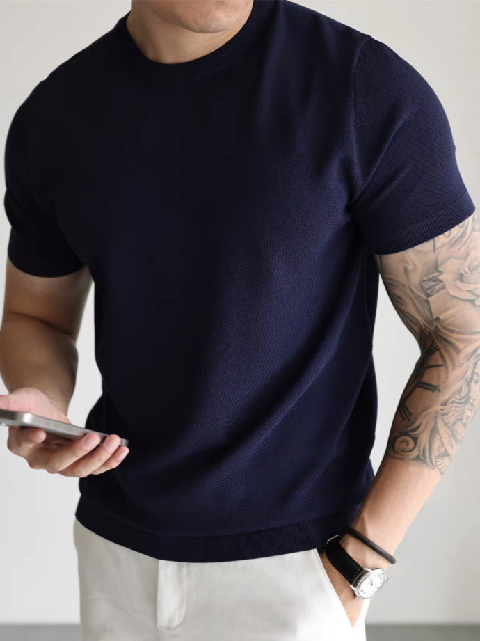 Главная страница > Мужской трикотаж из лиоцелла Tencel, дышащий, тонкий, с короткими рукавами, маленькая водолазка, повседневная рабочая одежда, трикотажная футболка