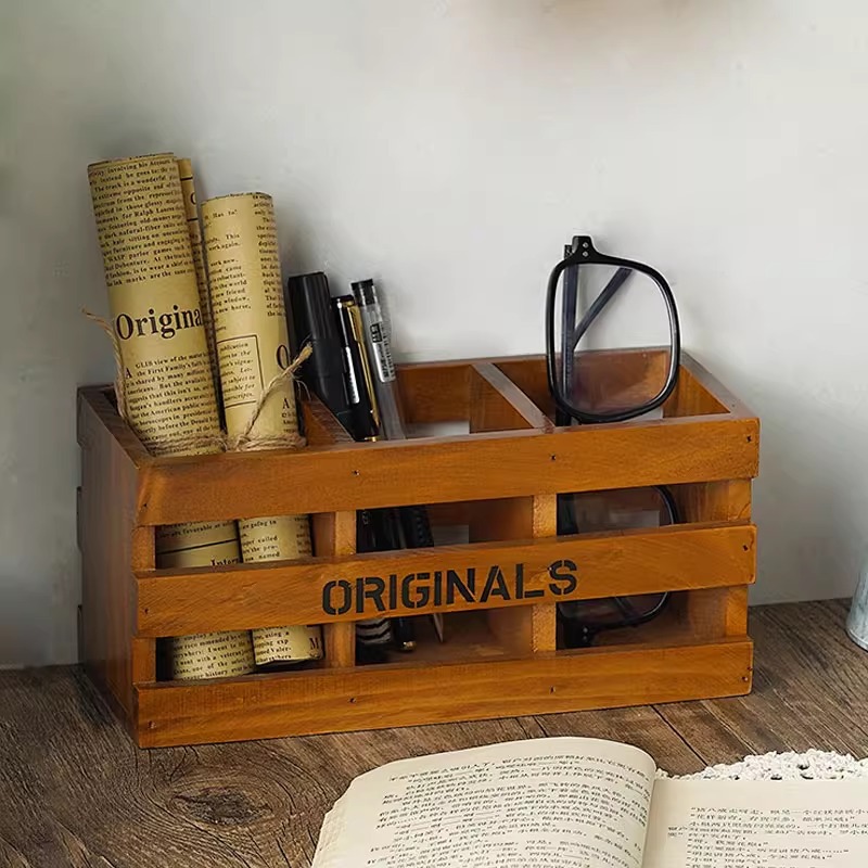 Главная страница > Офисный держатель для ручек, деревянный ретро-стол, школьные принадлежности, коробка для канцелярских принадлежностей, настольное ведро для кистей для макияжа, креативные украшения
