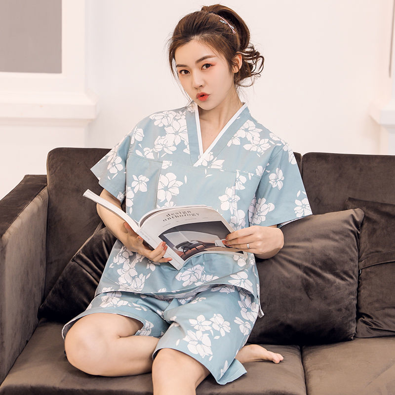 Женское синее кимоно с цветком магнолии