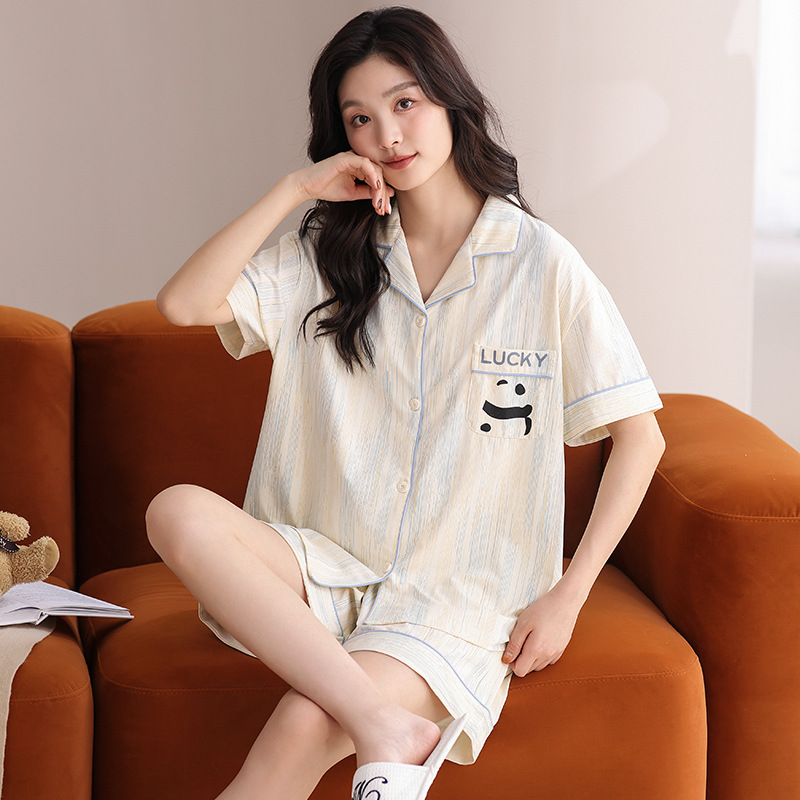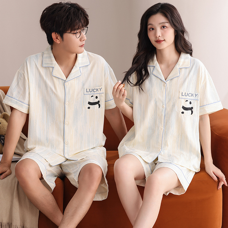 Главная страница > 2025 новая пара пижама хлопчатобумажная пижама женская летняя кардиган с короткими рукавами пижама мужской костюм костюм