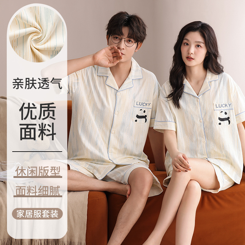2025 новая пара пижама хлопчатобумажная пижама женская летняя кардиган с короткими рукавами пижама мужской костюм костюм