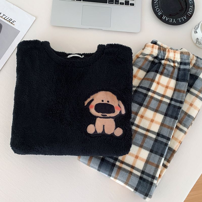 Главная страница > Коралловая собака с круглым вырезом коралловой бархатной пижамы мужской осенью и зимой фланелевая толстая пара домашней одежды женский костюм трансграничный