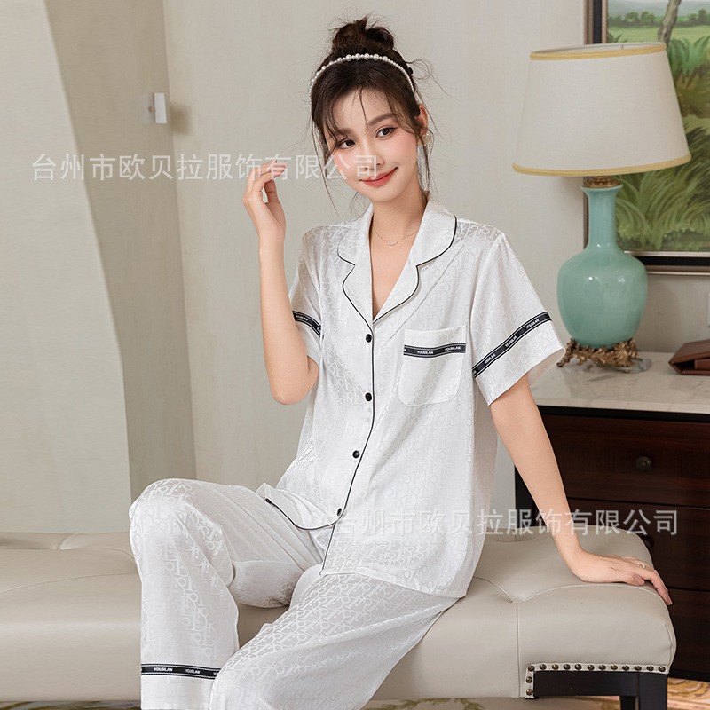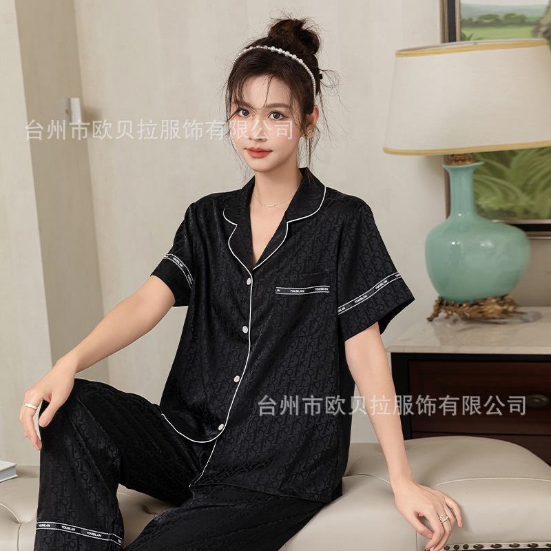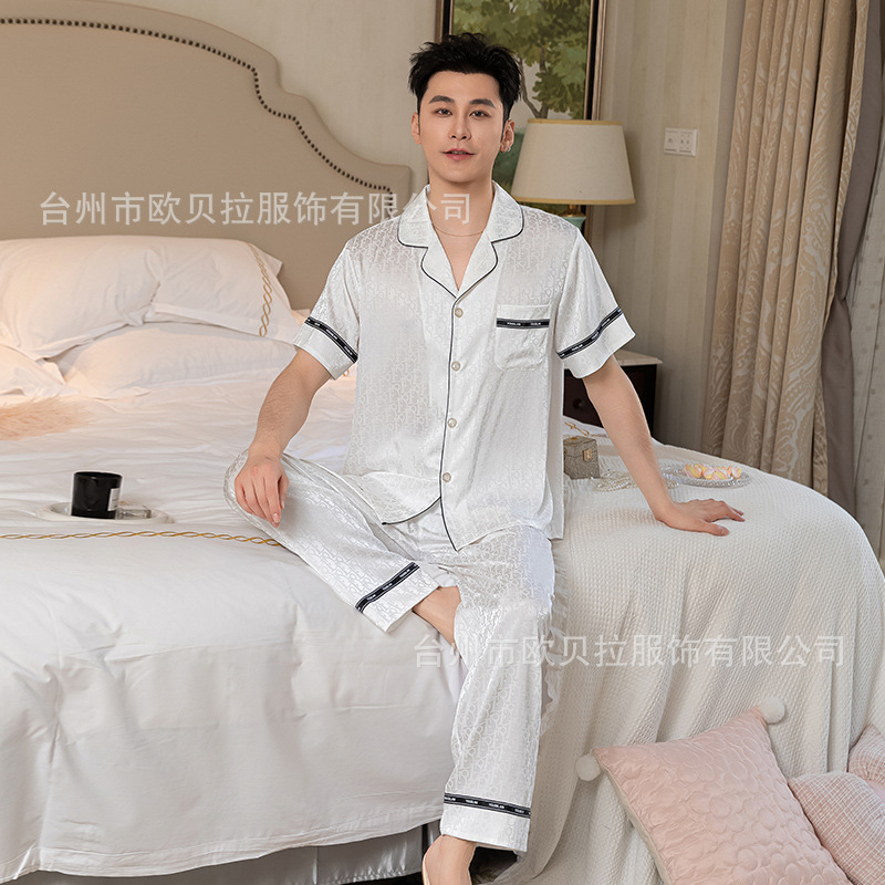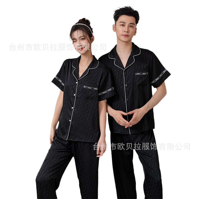 Главная страница > Летняя новая пара пижамы женский лед шелк премиальный смысл мужской свободный короткий рукав брюки набор для домашней одежды оптом
