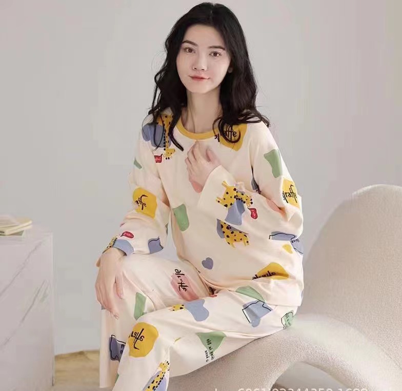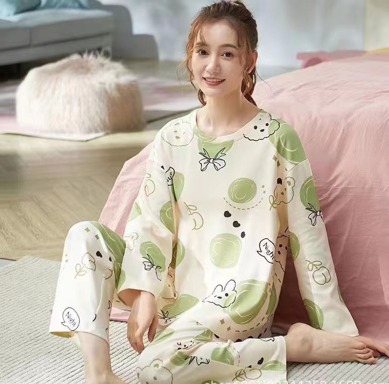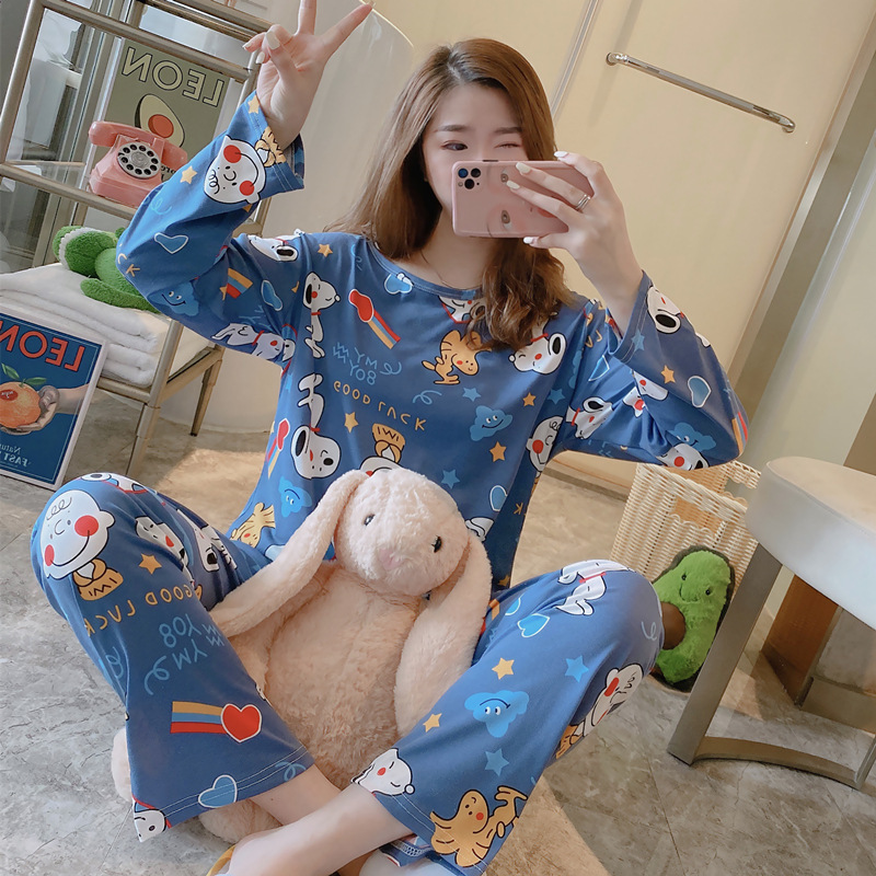 Главная страница > Длинная пижама весна и осень женский новый свежий ветер мультяшный круглый воротник милый сладкий хед домашний набор