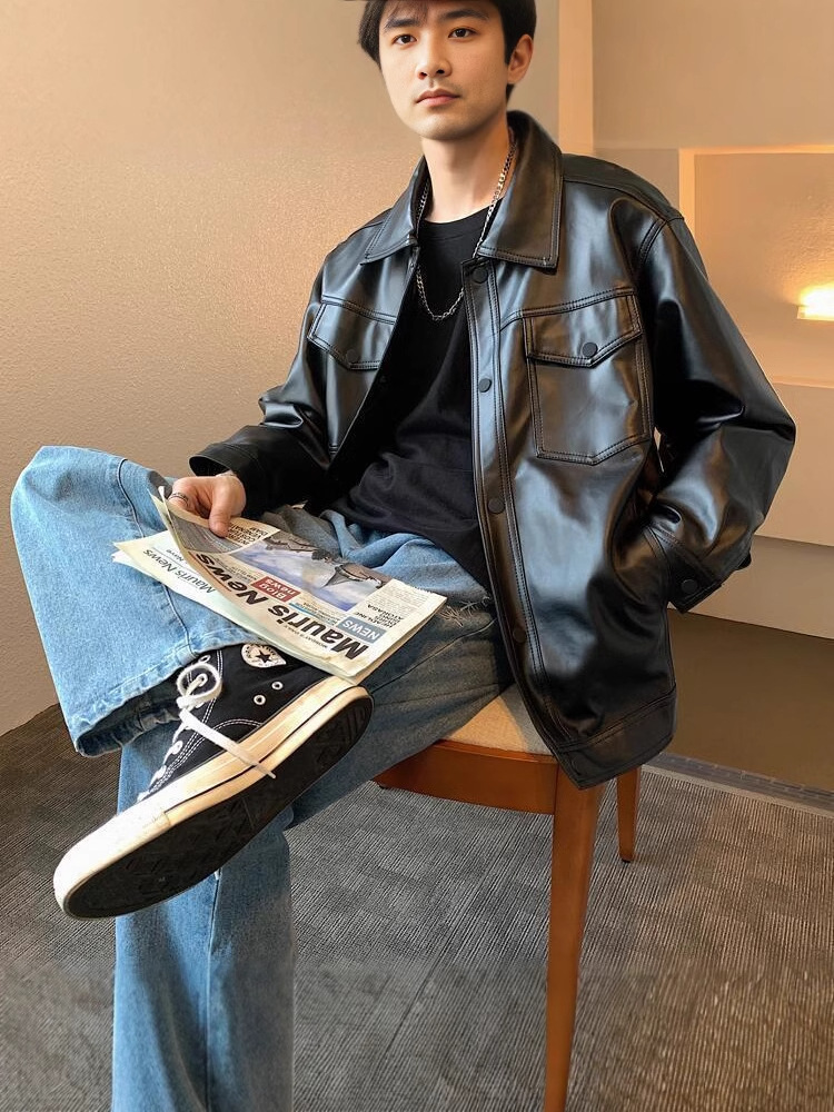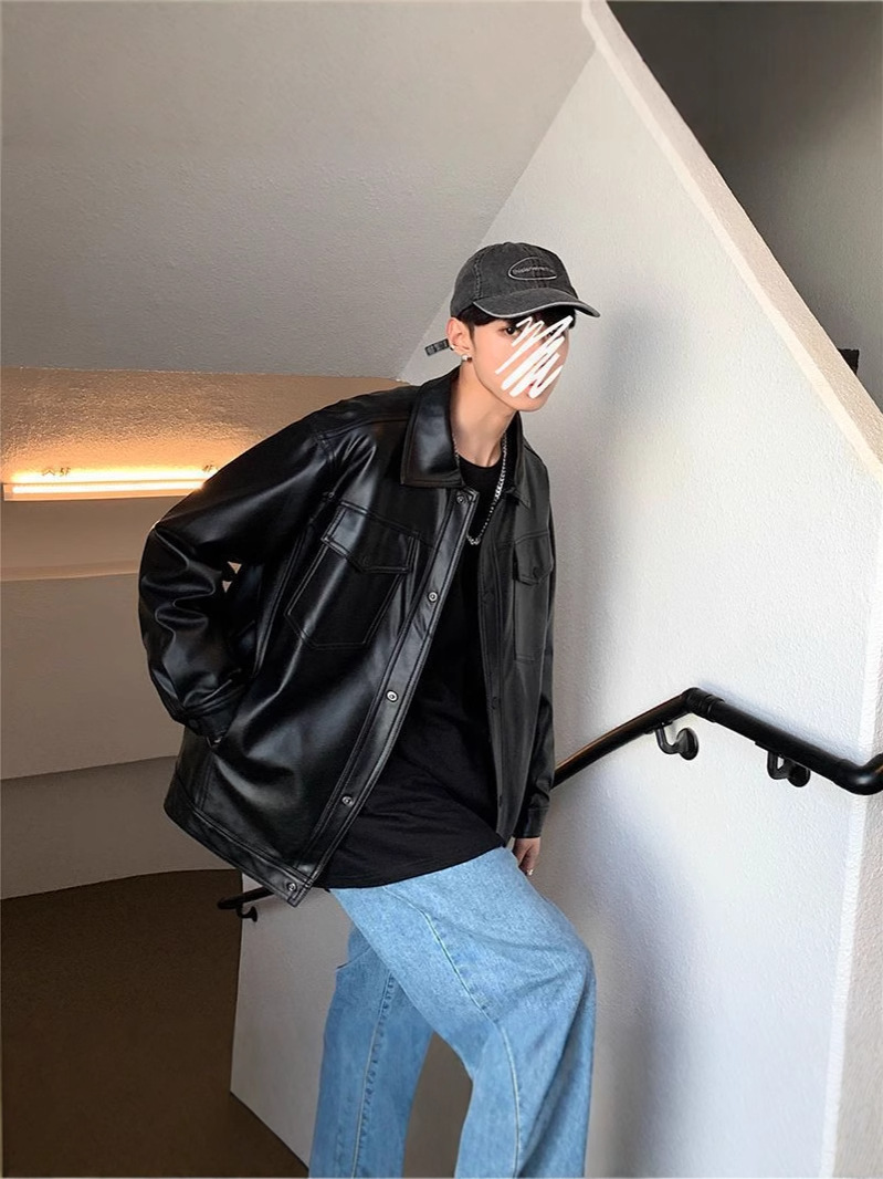 Главная страница > Американская весенняя и осенняя локомотивная кожаная одежда мужская корейская версия тренда PUpi прилив гонконгский ветер свободный дикий красивый пиджак