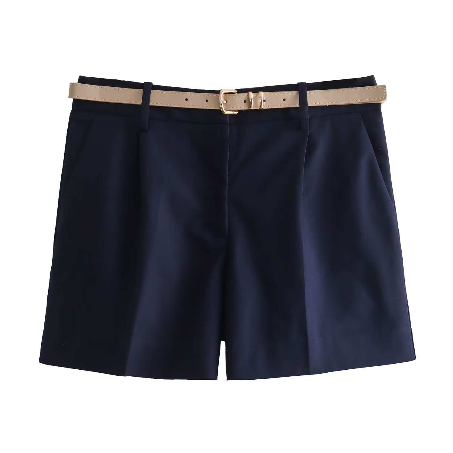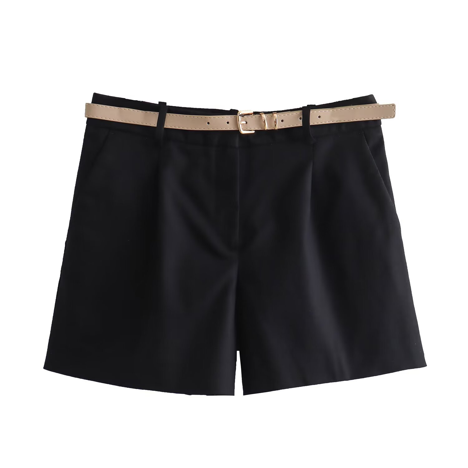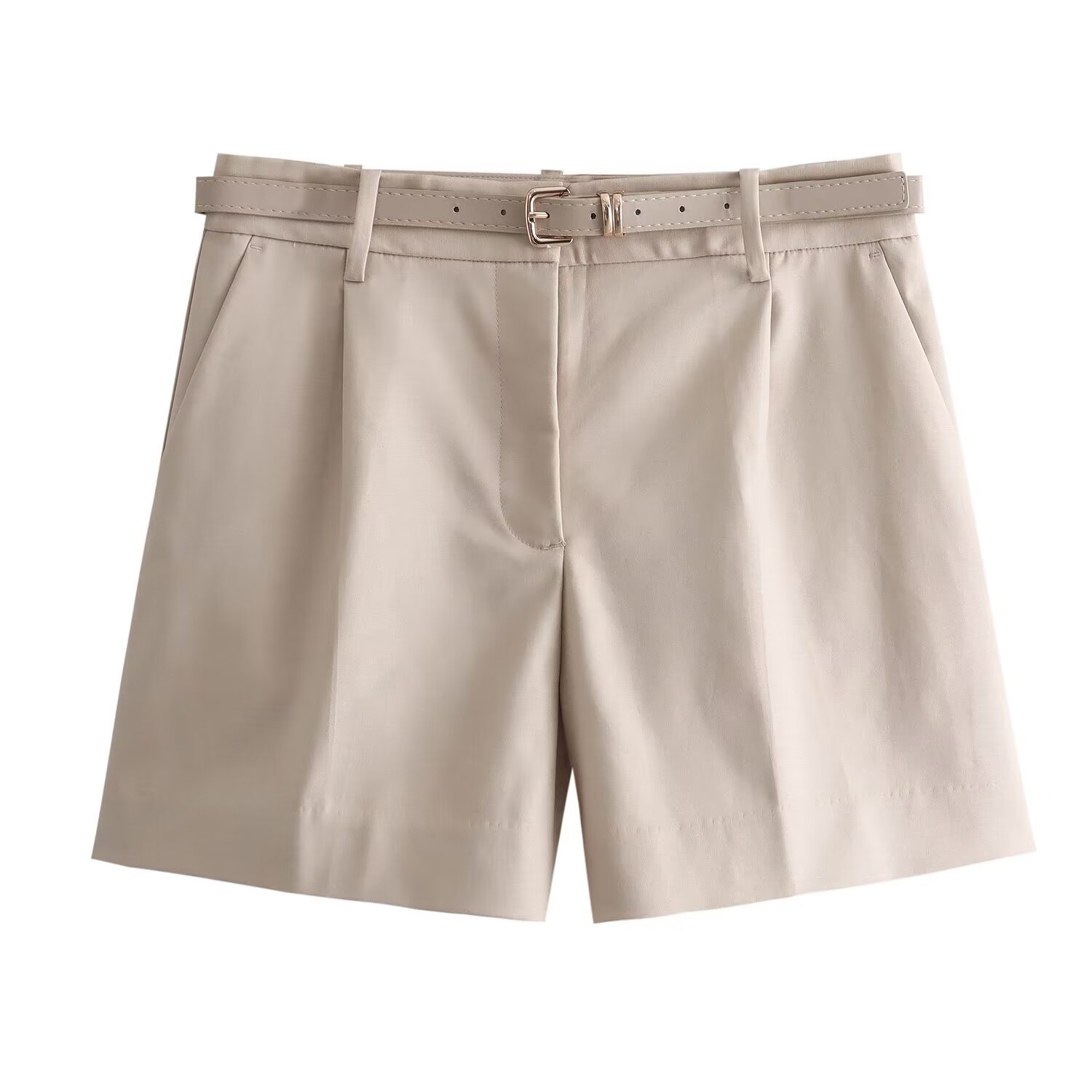 Женские шорты PB&ZA лето 2025, новый стиль, простой прямой крой, с поясом, повседневные, артикул 8372104