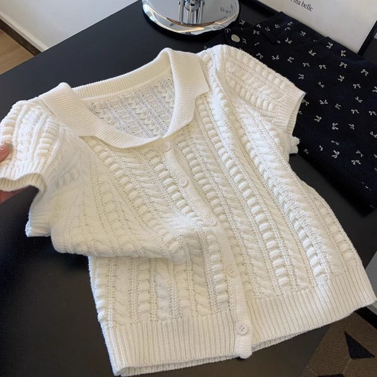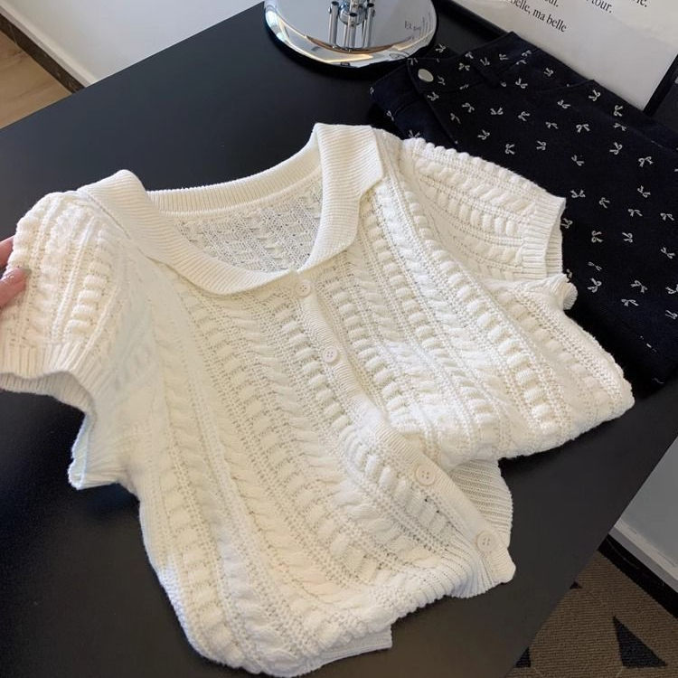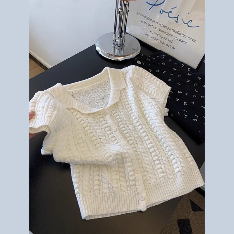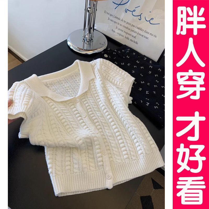 Главная страница > Большой размер толстый мм Летний тонкий ледяной отворот трикотажный кардиган с короткими рукавами футболка поло отворот французский топ