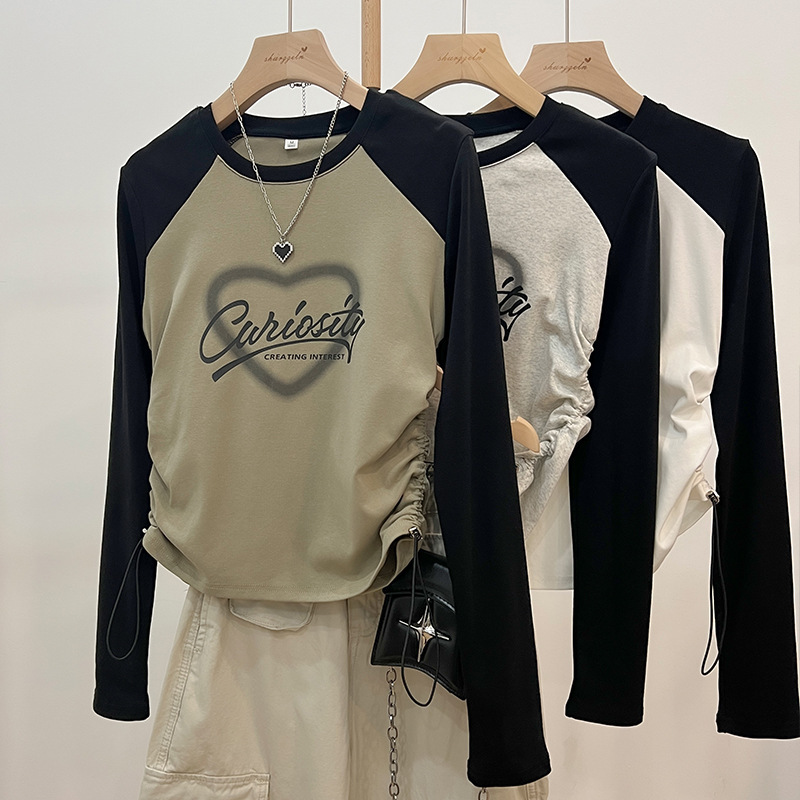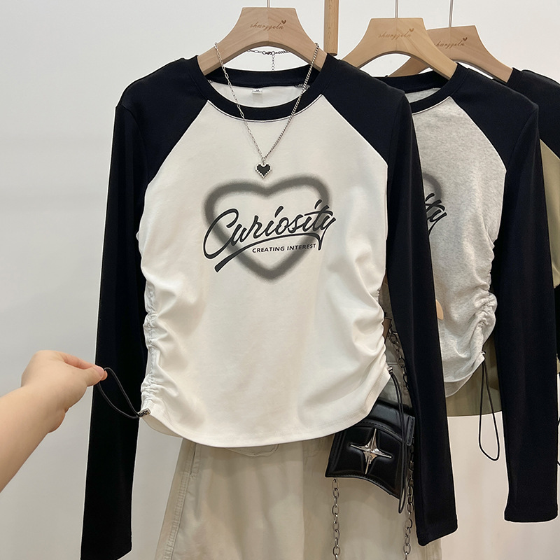 Главная страница > Футболка с круглым вырезом с длинными рукавами, цветная рубашка, женская весна и осень, новая веревка, тонкая талия, короткая, дикая нижняя рубашка