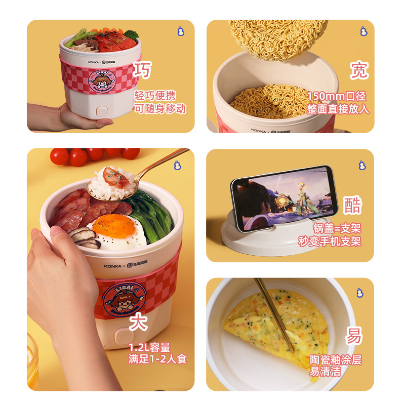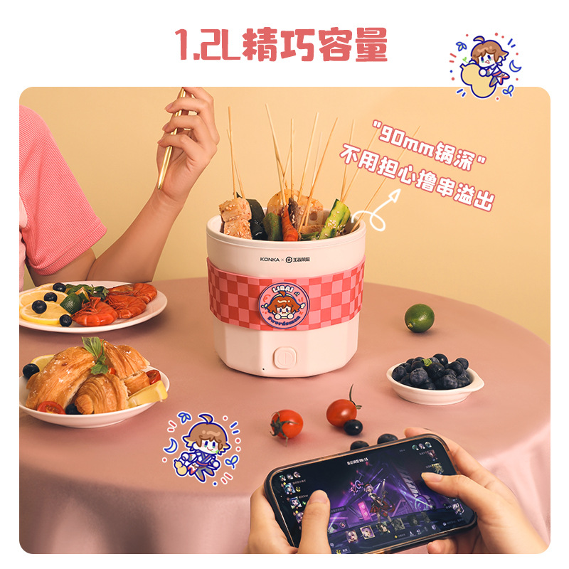 Электрический кастрюля Konka Многофункциональное общежитие Интегрированный горшок с лапшой быстрого приготовления Слава короля Ли Бай подарочной группы Покупка электрического горячего горшка