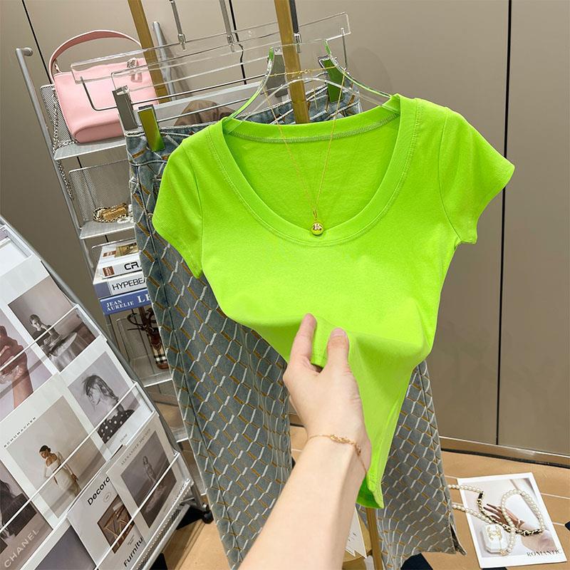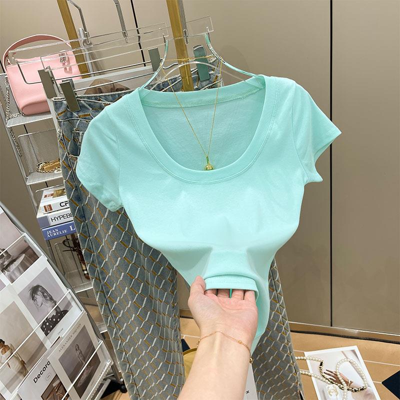 Европейские хлопчатобумажные белые футболки с короткими рукавами Nins прилив летом новый иностранный стиль ключица обтягивка короткая рубашка