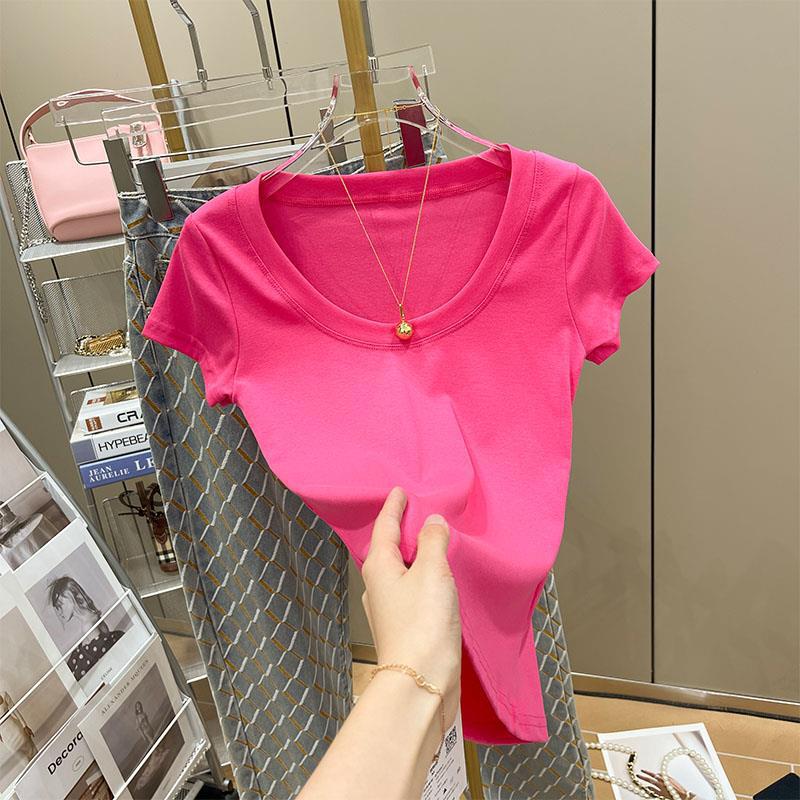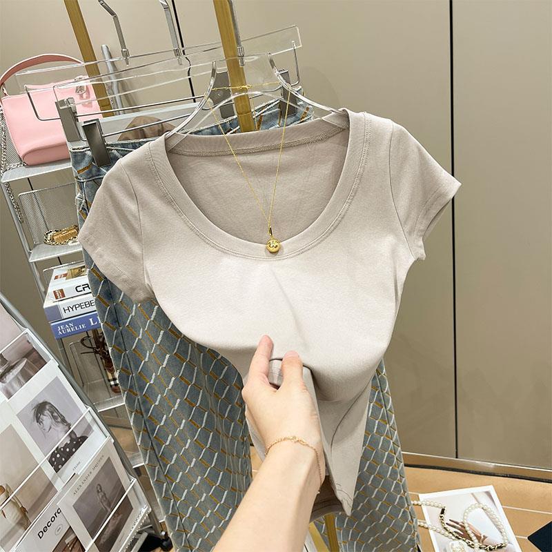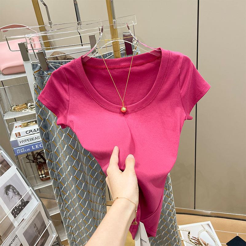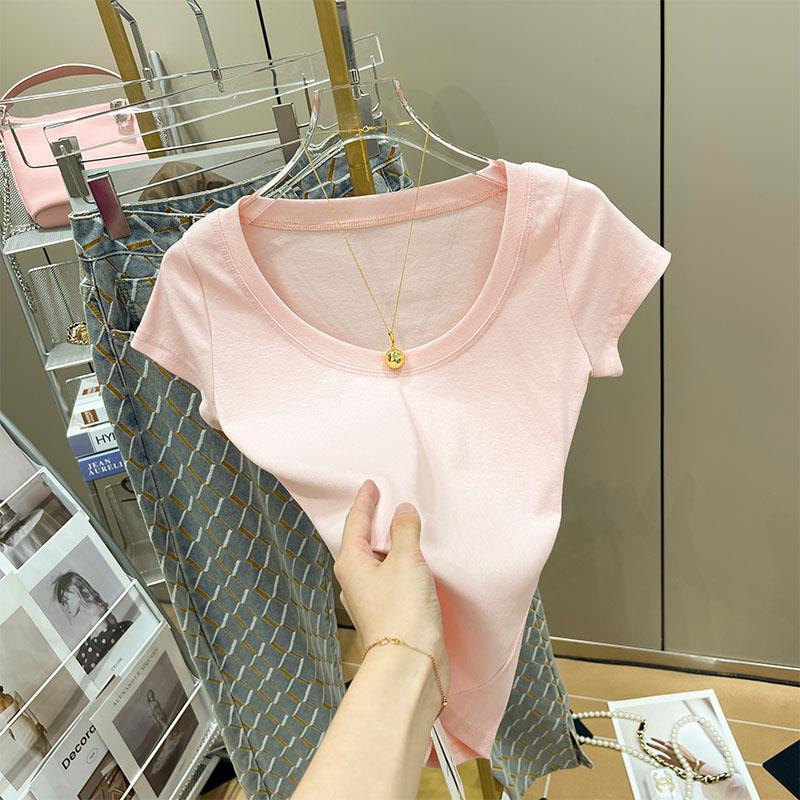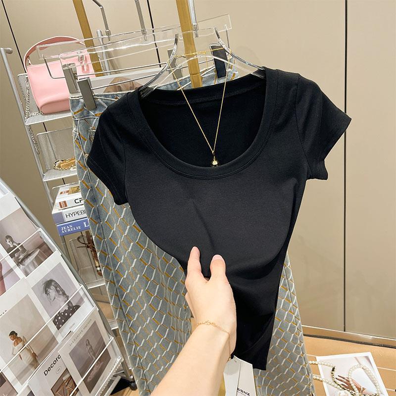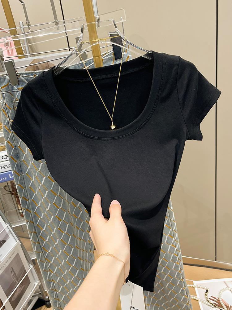 Главная страница > Европейские хлопчатобумажные белые футболки с короткими рукавами Nins прилив летом новый иностранный стиль ключица обтягивка короткая рубашка