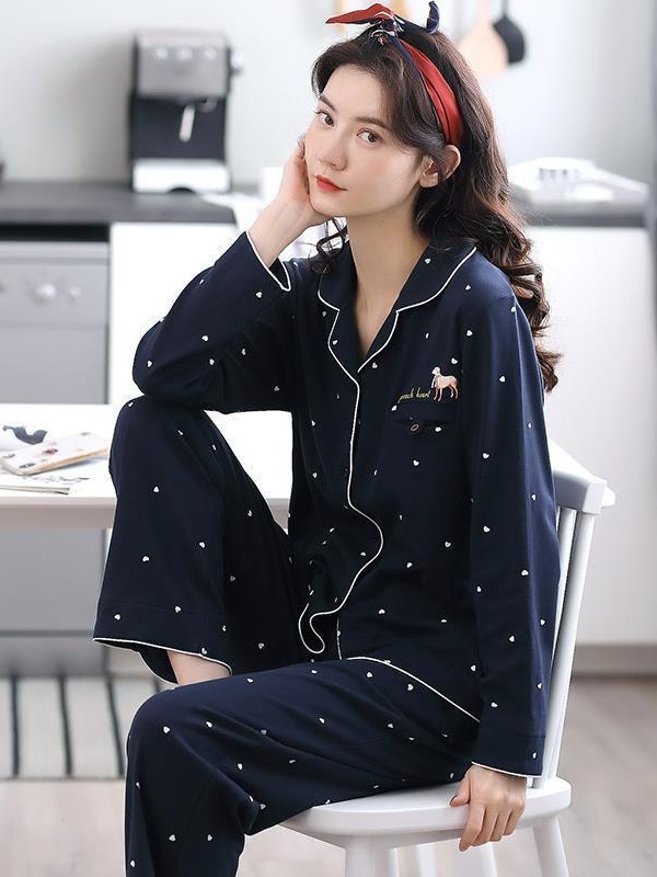 Пижама женская весна и осень хлопок с длинными рукавами весной и летом студент корейская версия милая женщина повседневная домашняя одежда набор