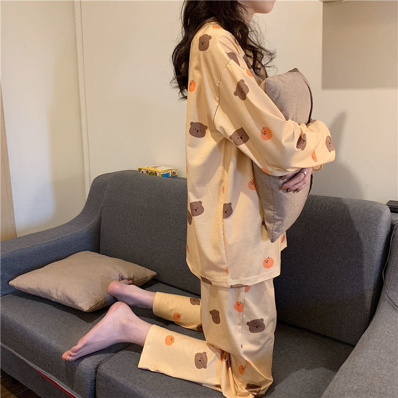 Главная страница > Пижамы, Женская осенне-зимняя милая куртка с длинными рукавами, можно носить Летний Тонкий костюм из двух предметов, весенне-осенняя домашняя одежда