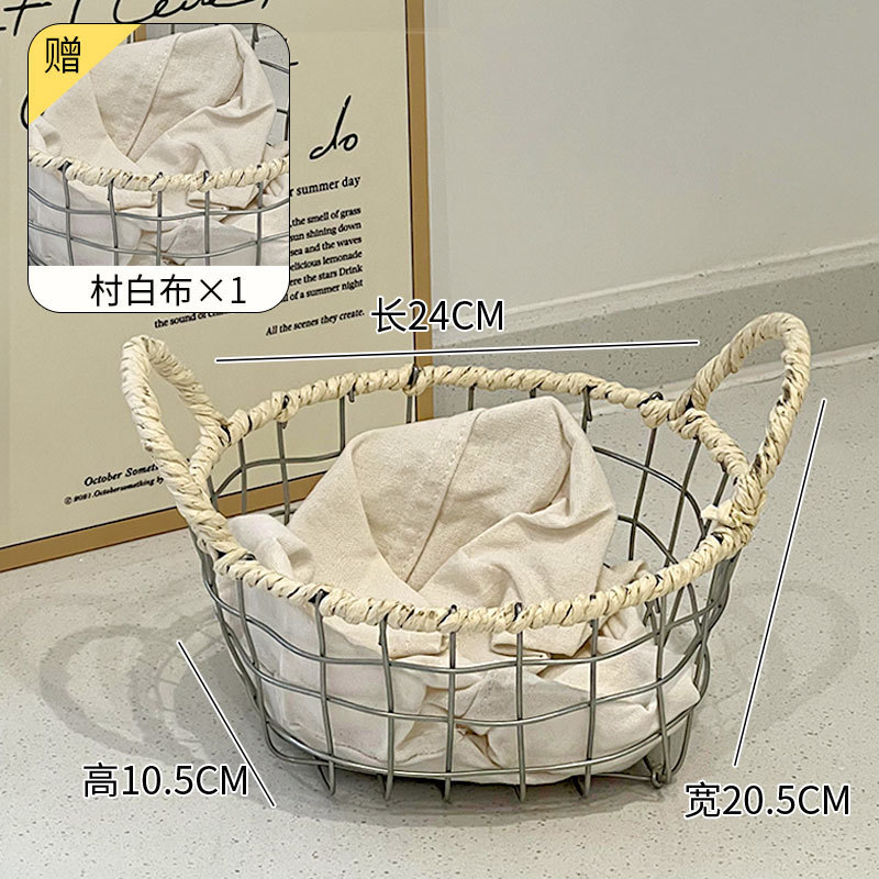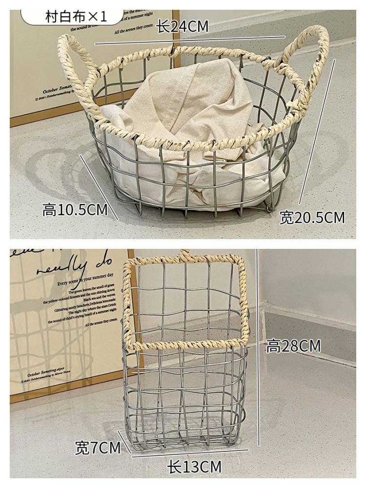 【Рекомендуемый стиль изображения】Ажурная корзина для хранения из кованого железа — круглая форма, в комплект входит белая подкладочная ткань