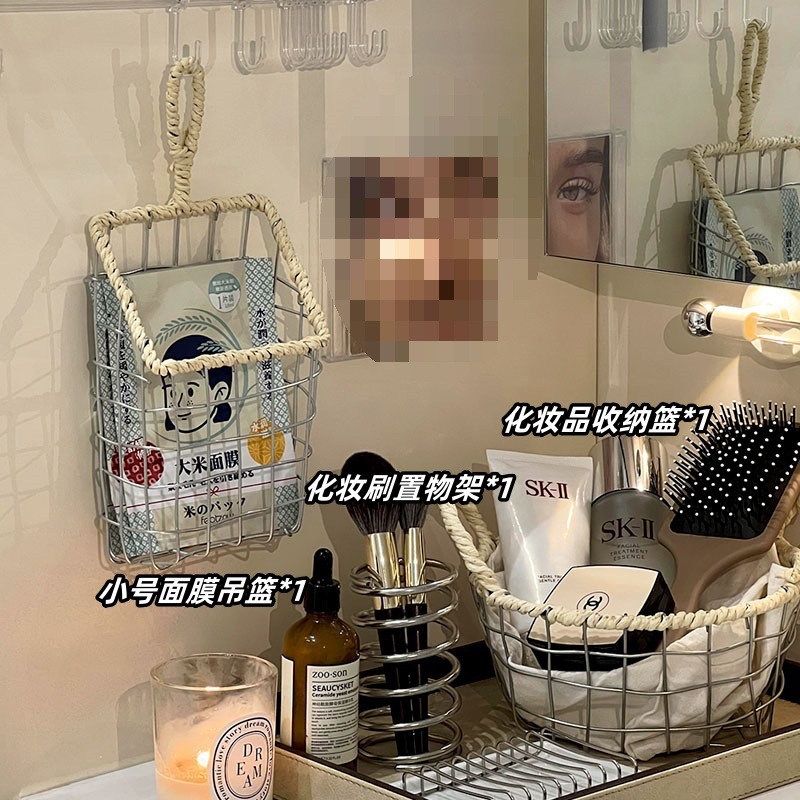 【Сэкономьте $3 на рекомендованном наборе из 3 предметов】Круглая корзина для хранения + подвесная корзина для масок + держатель для кистей для макияжа