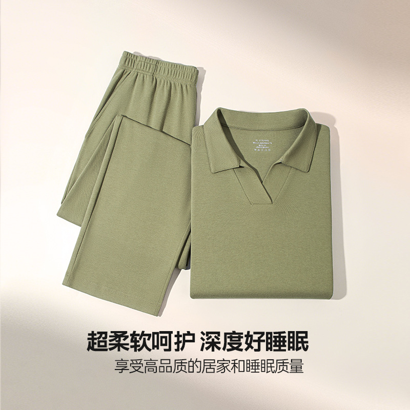 Главная страница > [Двойной жаккард] Новый мужской пижамный комплект с воротником-голубем, осенне-зимние брюки с длинными рукавами, которые можно носить как домашнюю одежду.