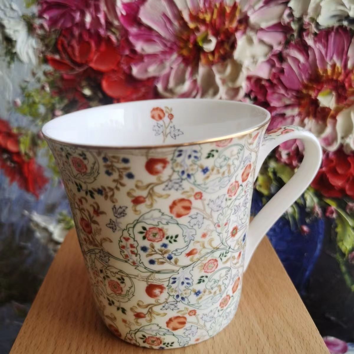 Главная страница > Кружка из костяного фарфора легкая роскоши высокого уровня персонализированная масляная живопись ветра кружка из анемона одуванчика чашка воды домашнее хозяйство
