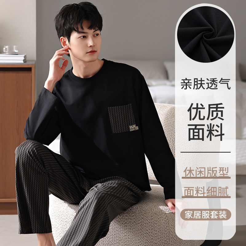 Главная страница > Пижама мужской 2025 весной хлопчатобумажный длинный рукав весной и осенью мужской может носить корейскую версию повседневной свободной домашней одежды
