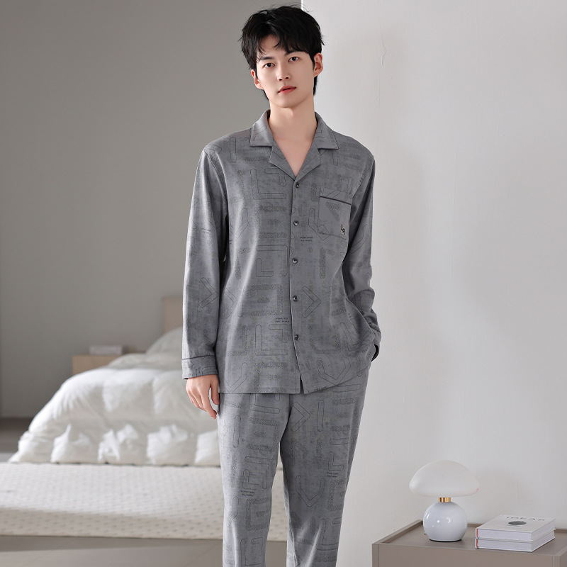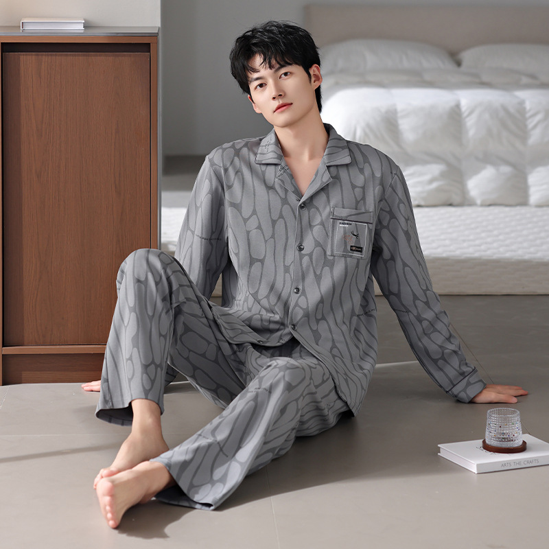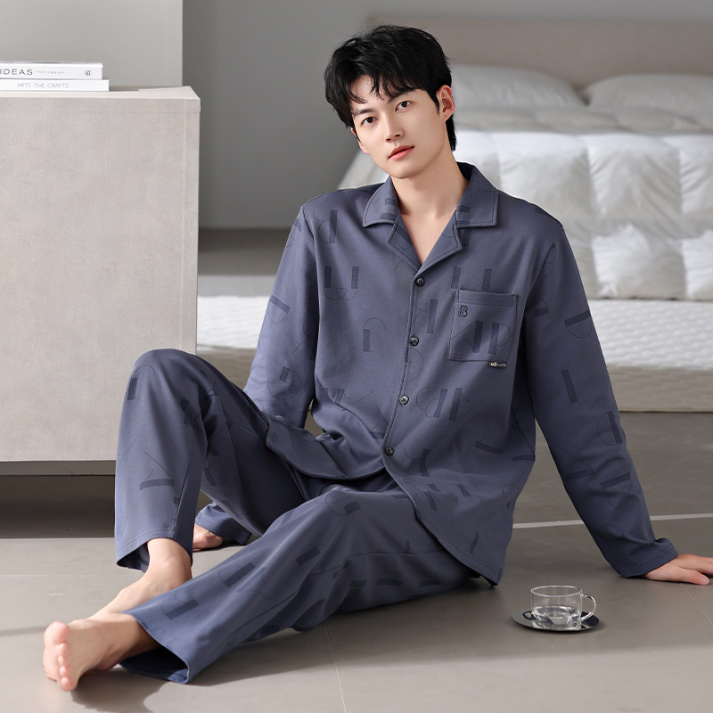 Главная страница > Мужская пижама мужская весна и осень модные дни 2025 новый хлопок с длинными рукавами мужской осенний хлопковый костюм
