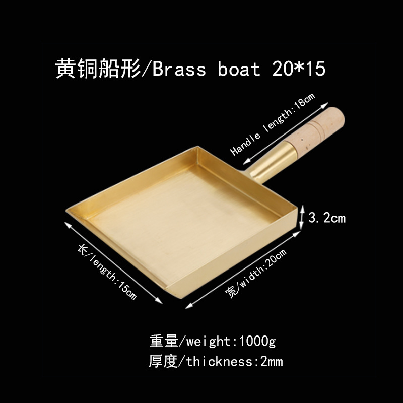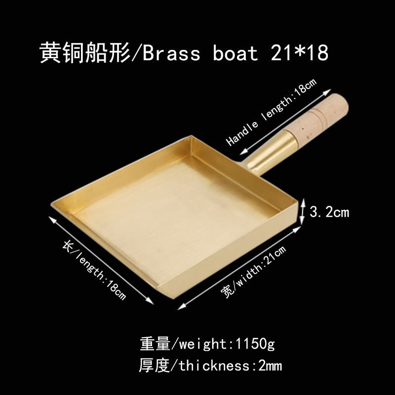 Сковорода для сжигания чистой меди из латуни Yuzi в японском стиле с деревянной ручкой, квадратная сковорода, медная сковорода с плоским дном