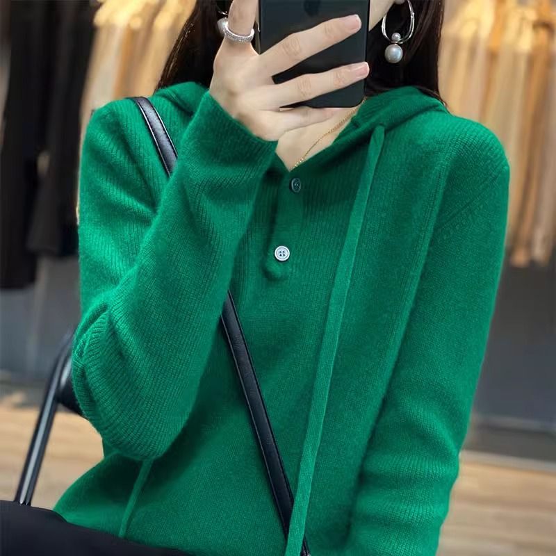 Главная страница > [Кашемир] Кашемировый женский свитер, осенне-зимний свитер с капюшоном, свободная толстовка большого размера с утолщенным шерстяным базовым слоем под ней.