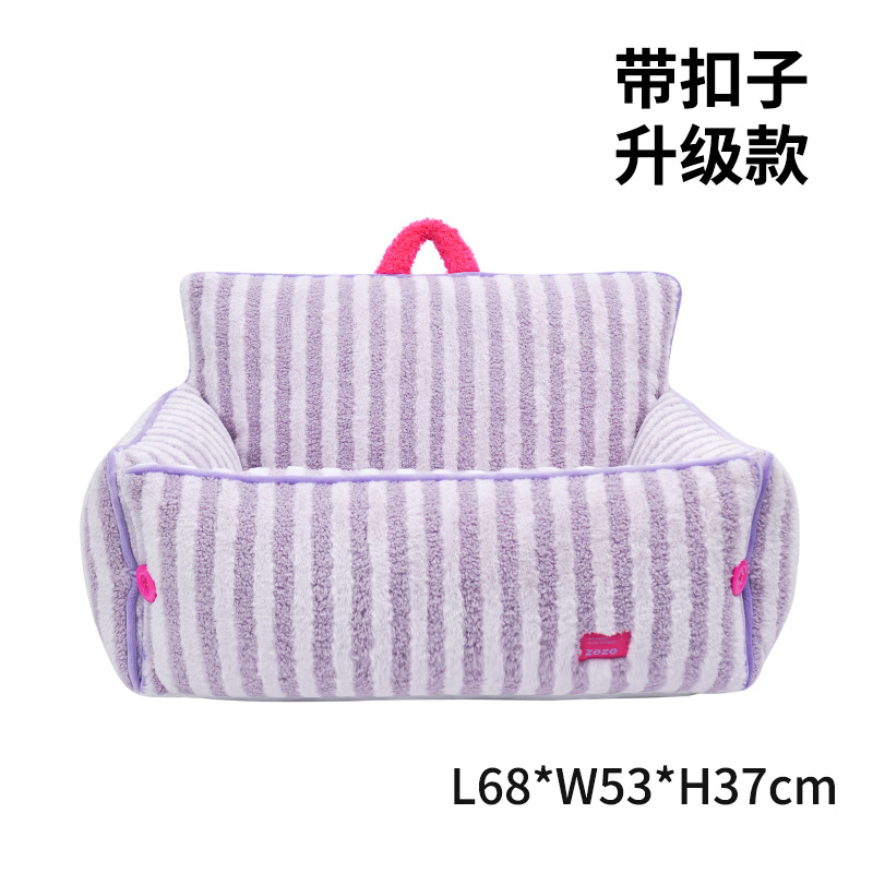 Полосатая мягкая бархатная кроватка для домашних животных фиолетового цвета (усовершенствованная модель с пряжкой)