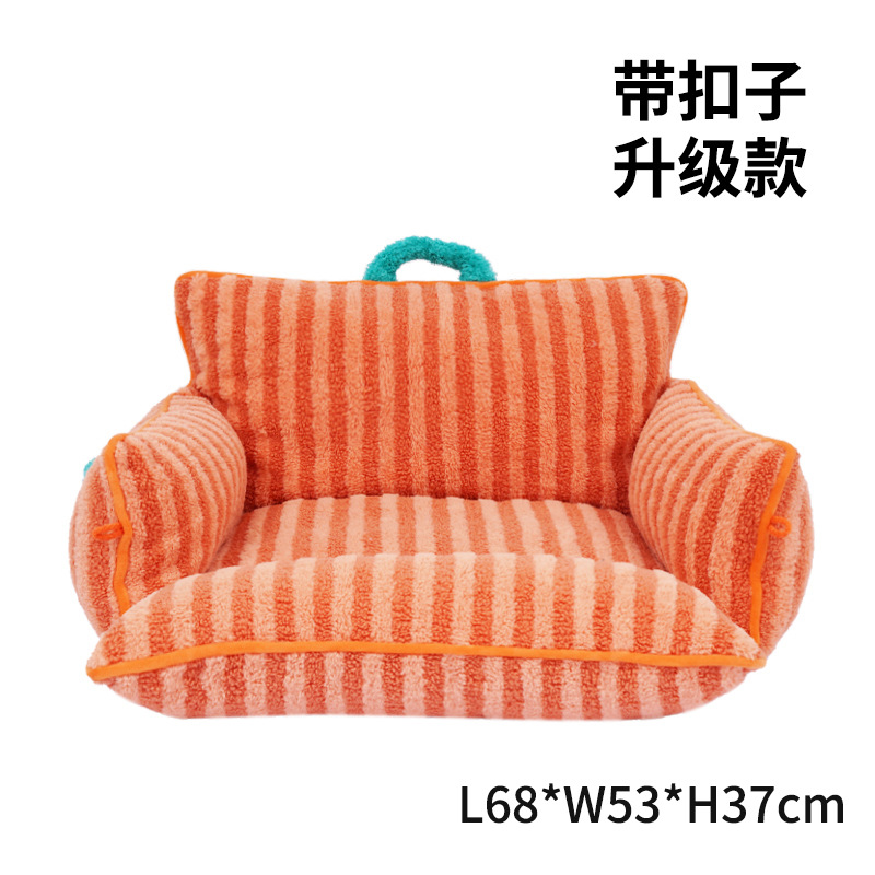 Полосатая мягкая бархатная кроватка для домашних животных оранжевого цвета (усовершенствованная версия с пряжкой)