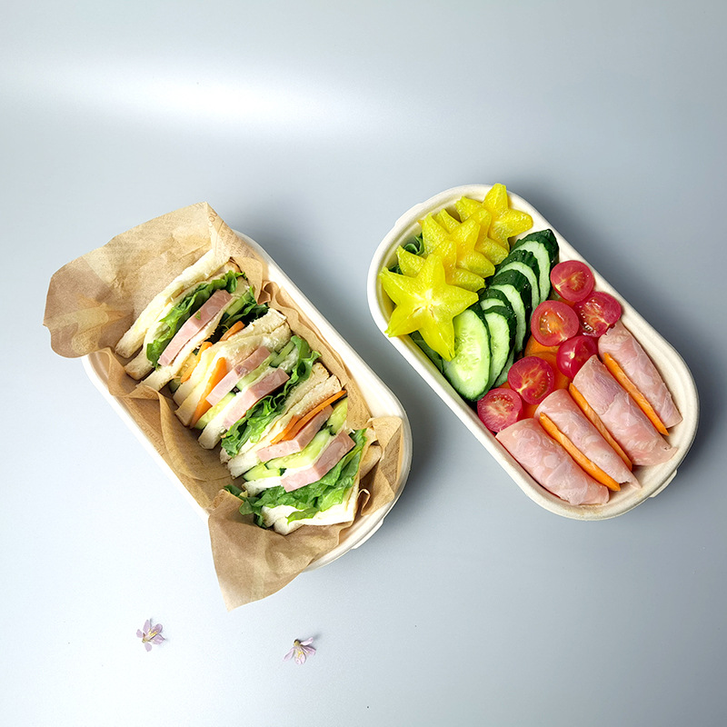 Главная страница > Коммерческая разлагаемая упаковочная коробка с двумя отсеками Коробка для еды на вынос Одноразовая коробка для завтрака Легкая пищевая коробка для салатов Прямоугольная коробка для закусок