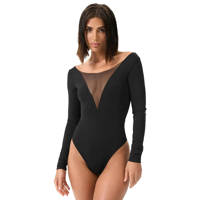 Главная страница > Y25BS229 Европейский и американский женский летний прозрачный комбинезон с широким вырезом и сетчатыми вставками, однотонный, с длинными рукавами