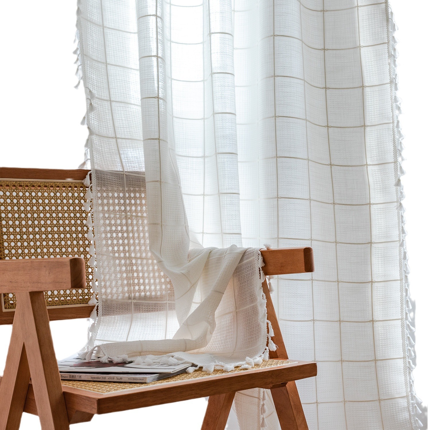 (Перфорированный) Мавританская шашка. Бело-Белый кисточкой занавес