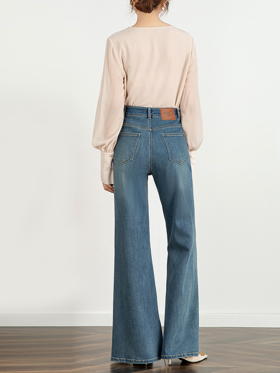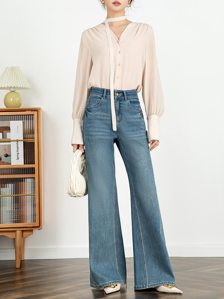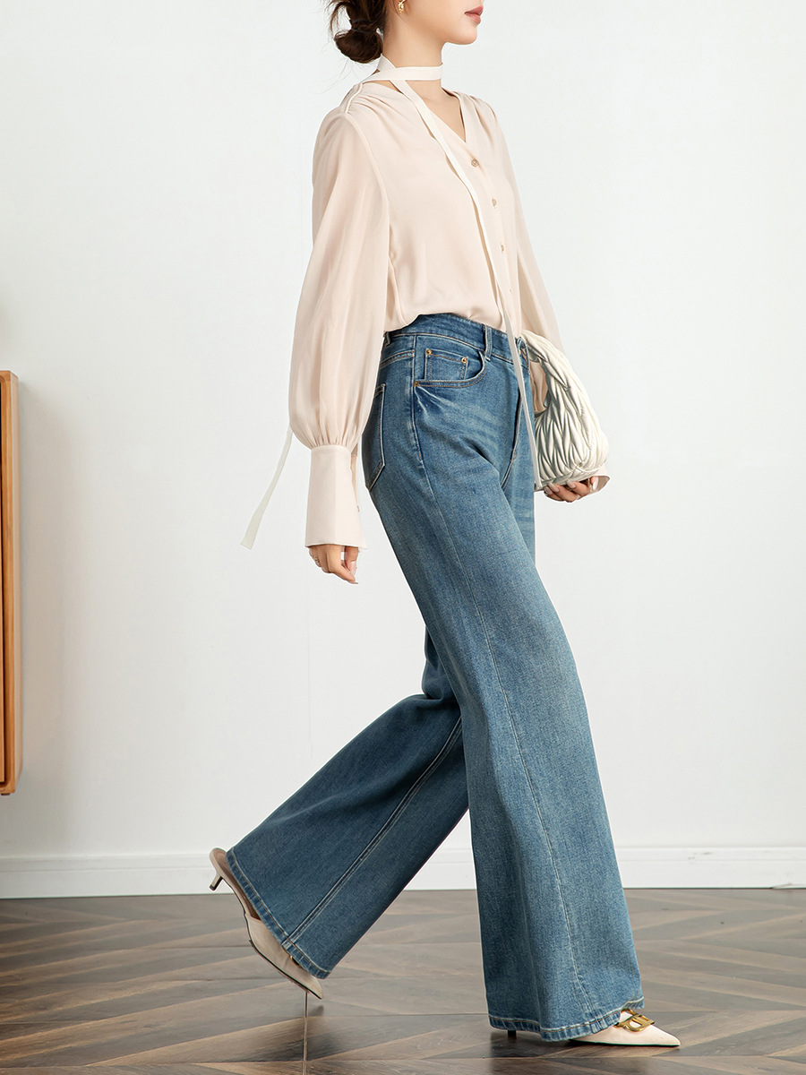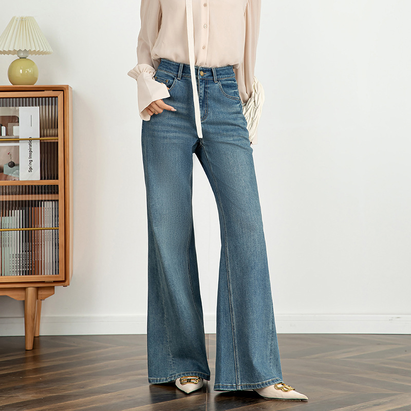 Главная страница > Универсальные женские джинсы прямого кроя с четырехсторонним растяжением, подходящие для осени, с высокой талией, свободные широкие брюки, расклешенные брюки в пол, длинные брюки 8118