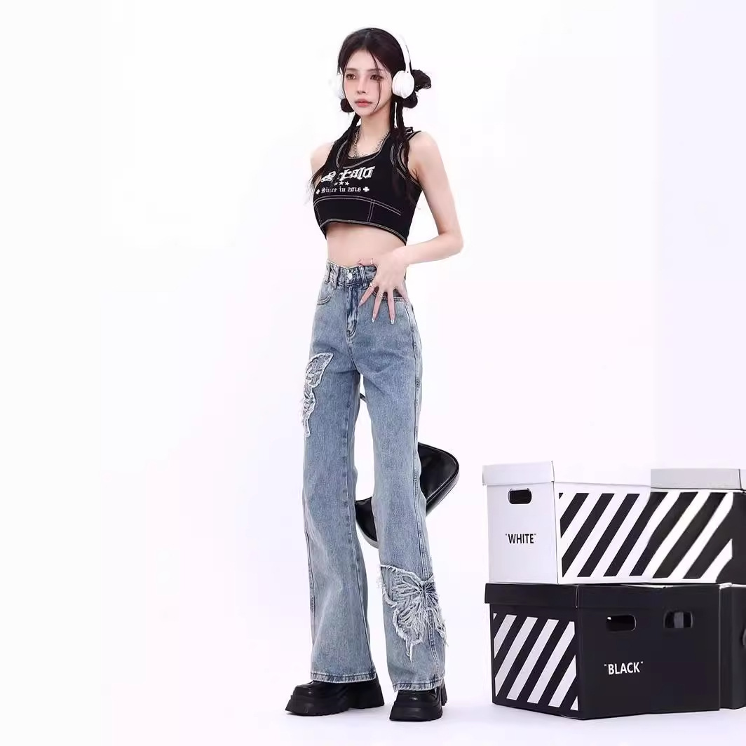 Главная страница > Весенне-осенние джинсы-клеш 2025 года, винтажной обработки, с вышивкой бабочек, универсального дизайна, для женщин