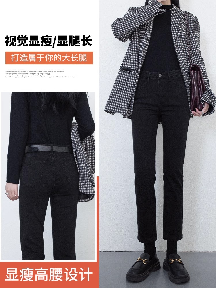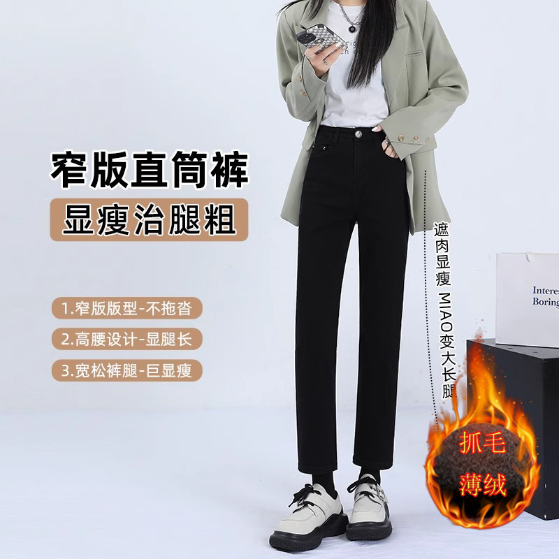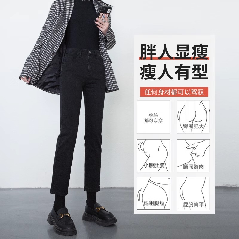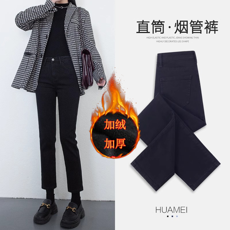 Главная страница > Черные прямые джинсы с высокой талией, женские осенне-зимние Композитные брюки с флисовой подкладкой, модные штаны для похудения