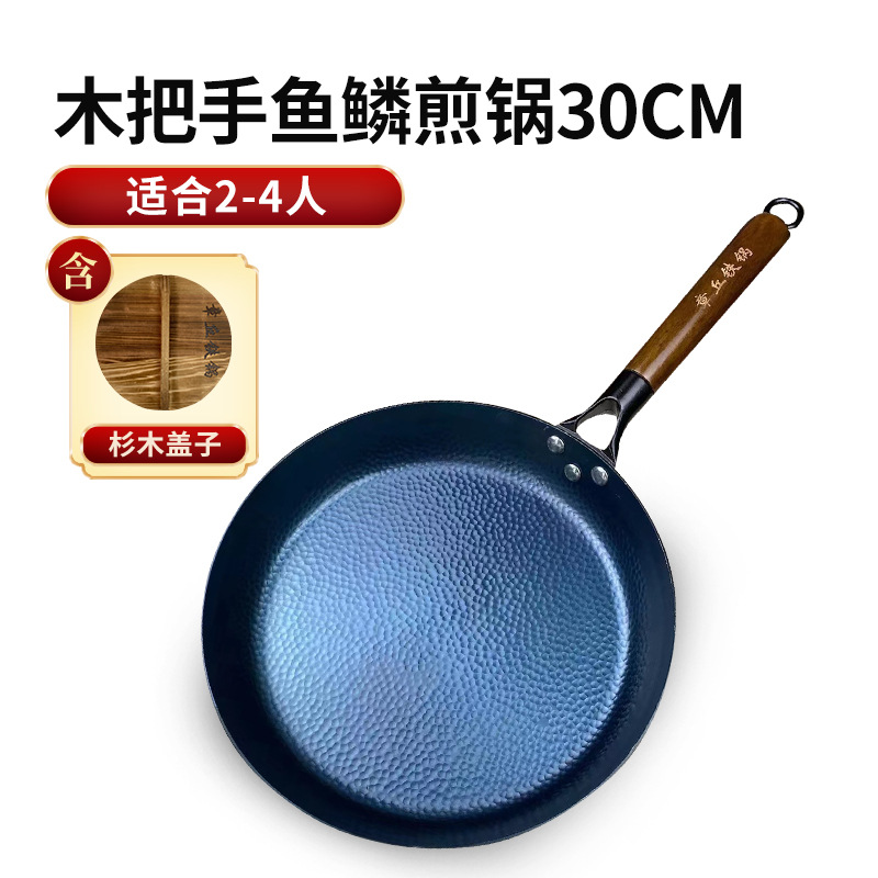 Главная страница > Сковорода ручной работы Zhangqiu без покрытия с деревянной ручкой из рыбьей чешуи Оптовая продажа Сковорода с антипригарным покрытием Вок Бытовая многофункциональная посуда
