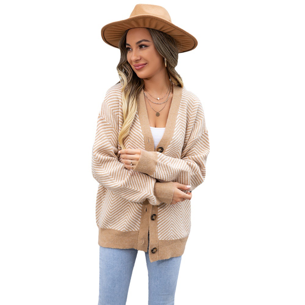 Главная страница > Весна 2023, новый женский кардиган с цветными блоками, на пуговицах, вязаный топ, пальто с V-образным вырезом в стиле Amazon